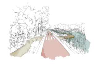 The Bergerven landscape project creates a new blue-green structure in the heart of Neeroeteren. With a network of paths, ecological connections, and water-based experiences, the master plan links the historic village center to the Hoge Kempen National Park. The new bridge over the Zuid-Willems Canal, starting from the small island in the canal, serves as the finishing touch of this ambitious intervention and becomes a new gateway to the National Park.